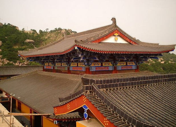 从寺前拾级而下,有雅境“情人谷”,山花烂漫,绿树成荫,身外其境,超尘脱俗,油然而生。其间,有“桃花洞”藏隐其中,洞内曲径通幽,步步登高,直达峰顶后,极目远眺,无线风光,尽收眼底。会当此时,每每令人身心皆忘,顿入豁然开朗、心旷神怡之境。尤其晚间,静伫山门,睹万家灯火似苍穹繁星,观大千世界如滚滚红尘,念芸芸众生毕竟法性同佛即祖,悟目目诸色终究无性如露似电。佛地畅想,心生慈悲,临风品法,法喜充满,实莫能状也。