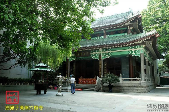 南朝始创建的大雄宝殿坐北朝南,塔在殿前。此殿保存到明初,洪武六年(1373年)割寺之半为永丰仓时被割去。洪武八年住持僧愈坚建觉皇殿(在今塔东),六榕寺即以此殿为大殿,正中门额挂着长形木刻匾“觉皇宝殿”,明清年间数次重修,清光绪三十年(1904年),获皇帝赏赐匾额“清修忠悃”,悬在殿梁上.