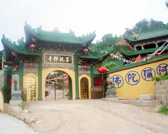 邑人李桂波居士,崇尚释教,自1993年起已捐资100多万元,在这里劈山铲坡,筑建梵宇。寺坐北向南,屹立于山脚,西侧与石泉岩毗邻,山清水秀。总建筑面积约800平方米,分为山门、大雄宝殿、两厢(客堂、僧舍)。“菩提禅寺”大匾,刻于山门,非常显眼悦目。山门十分高大,上盖两层澄色琉璃瓦,分三门口。山门前,筑有数十级石阶的路径,环境壮阔。进山门后,又有一个非常开阔的大埕,然后才进大殿。大雄宝殿内,主奉西方三圣阿弥陀佛、观世音菩萨、大势至菩萨,右附地藏王菩萨,左附目犍连菩萨。殿门口前东侧,建“三清宝殿”,是“丁丑年(1997)葭月”落成;西侧建一座“五观堂”。