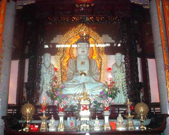 汕头市潮阳棉城镇棉北菩提禅寺,以石泉岩为邻,于1993年起由邑人李桂波居士捐资所建,2001年8月1日获临时批准登记证,以建筑宏伟、装饰高档而吸引游人。 邑人李桂波居士,崇尚释教,自1993年起已捐资100多万元,在这里劈山铲坡,筑建梵宇。寺坐北向南,屹立于山脚,西侧与石泉岩毗邻,山青水秀。总建筑面积约800平方米,分为山门、大雄宝殿、两厢(客堂、僧舍)。“菩提禅寺”大匾,刻于山门,非常显眼悦目。山门十分高大,上盖两层澄色琉璃瓦,分三门口。山门前,筑有数十级石阶的路径,环境壮阔。进山门后,又有一个非常开阔的大埕,然后才进大殿。大雄宝殿内,主奉西方三圣阿弥陀佛、观世音菩萨、大势至菩萨,右附地藏王菩萨,左附目犍连菩萨。殿门口前东侧,建“三清宝殿”,是“丁丑年(1997)葭月”落成;西侧建一座“五观堂”。白牛庵白牛庵,座落于潮阳文光街道平东居委,即东山大道平东段东侧。创建年代失考。但从庵中一根石柱上刻的“乾隆十七年(1752)住持比丘僧霜月募化重建”的记载应可断定,远在公元1752年前便有白牛庵存在了。道光七年(1827)由僧一者重建,1958年被毁,1947年和1988年由郑觉珠女居士两度主持修葺与重建。1988年五月十七日由郑觉珠主持重建落成开光。 1968年,破坏封建迷信期间,佛像被毁,房作他用。“文革”结束,宗教信仰恢复自由,几费周折,磨破嘴皮,要回产权,但见屋之将倾,杂草过膝,然却悲喜交集。未几,藏于破寮多年的观世音菩萨突现身于庵内,善信欢呼雀跃。观世音菩萨雕像,是唯一保存下来的佛像。此后得多方乐捐赞助,终于在1988年5月17日,在原址重建落成开光。 重建一新的白牛庵,坐东向西,建筑面积600平方米,占地400平方米(由于让部分地于辟东山大道,故比原面积小了些)。是中轴格式,砖木结构,正座加两厝包。正座由前后二座组成,前座建筑顺序为前厅(正门阁)、拜亭(两侧有龙虎井)、后厅(圆通宝殿);后座建筑顺序为埕,拜亭(两侧有龙虎井),厅(大雄宝殿),埕和龙虎井两侧有廓。前座在龙虎井处,后座在两廓处都开有侧门通厝包,从而使前后座通过厝包联通起来。在大雄宝殿后面另建饭堂和厨房及花园,使整个白牛庵占地面积达到近750平方米。 圆通宝殿内供奉观世音菩萨像(即上面提到的原雕像),左右两边分别供奉注生娘娘像和宋大峰祖师像。 大雄宝殿内主奉三尊如来佛泥塑像,各高约二米。两侧供奉伽蓝菩萨和达摩祖师,还有十八罗汉。殿前拜亭供奉弥勒像。殿内留存有两根古老鼓形石柱,左柱刻“国子监监生林诏英喜舍佛殿石柱一条”;右柱刻“乾隆十七年(1752)住持比丘僧霜月募化重修”。 后花园翠竹成林,枝叶婆娑,倍感清幽。 桐荫古寺潮阳市棉城东山的桐荫寺,创于北宋(960-1127),寺位于东山风景区,与光明精舍、超真观、城隍庙、双忠祠、东岳庙、灵济宫、棉安善堂平列而皆重建。古名桐荫古寺。后因时代变迁而荒废。由邑人释弘修募资于1997年冬重建告竣,越春1月18日开光,为东山添秀。 重建一新的古寺,大门匾额“桐荫古寺”系天津市佛协会长龚望居士所题。门联“桐丝奏禅净双修东山再起,荫庇求人天福古寺重新”是诗僧定持法师撰并书。以“桐荫”为冠首,上联中又以寺所在地东山而巧用成语“东山再起”,再在下联以“古寺重新”对之,十分高妙。两面大门墙各嵌罗汉石刻画,别具禅韵。寺坐北向南,东邻棉安善堂,总建筑面积800平方米。寺前筑一凉亭,寺分三进。一进是天王殿,有四大王和弥勒佛。二进是大雄宝殿,东置大钟,西安法鼓,正中底面供三尊如来佛:释迦如来、药师如来、阿弥陀如来。两侧共奉十八罗汉,形态各异。石刻柱联也是定持法师于1994年撰书。三进是藏经楼,楼顶设齐天阁、佛堂。大雄宝殿两侧,东是祖堂楼,楼顶供一尊卧佛;西是客厅楼,楼顶设达摩祖师殿。寺前大埕非常宽阔。总建筑面积1300平方米。 于2001年2月起,重建后座藏经楼。先把狭小旧楼拆掉,再在其后铲山,深10米,宽约20米,1年后完毕,接着,重建三层大楼,每层200平方米,投资约100万元,约于2002年十月竣工。一楼为祖堂,二楼为藏经,三楼为卧佛。 全寺金碧辉煌,法器颇全,经声阵阵,法播东山。它不仅是恢复潮阳一座礼佛宋寺,而且为风景区增添一处旅游胜景。慈恩寺潮阳市棉城东山,桐荫寺的下院慈恩寺,位于曲水流山口,是2001年十一月初五落成开光,由住持释宗隆创建,以其瑰丽雄伟,金碧辉煌,耸立山腰而分外夺目。 慈恩寺在桐荫寺东侧数百米远,劈山而建。1997年至2001年,历经五载,由释宗隆来此,在师父释心印法师支持下,募资共500万元之巨,历尽艰辛,削岭凿石,铲土填凹,逐步建成。 寺坐东北向西南,总建筑面积900多平方米,分为二进:大雄宝殿、藏经楼。登上往曲水流山路左旁,高大壮丽的寺门,十分引人。前一对石鼓,使大门更显庄严。入门,一个阔埕,走到尽头,置一门,上书“斋堂”,从这进去,竟是下楼之梯,可达地下室,面积近百平方米。这是设计师高妙之处,巧妙利用山地低处之佳作。若不是住持引领,我们还不知埕下有堂。全座寺院装饰很美,除精工雕琢的石刻、木刻,各色闪光的油漆之外,连外墙上也嵌着彩瓷;山壁也皆嵌彩瓷,既安全防崩又美丽悦目,令参观者赞不绝口。后座藏经楼,二层。下层为六祖惠能祖师堂,上层为藏经、客堂、僧舍,设备高雅。法华庵汕头市潮阳区文光街道文光居委四方地法华庵,创于民国十七年(1928),1986年至越