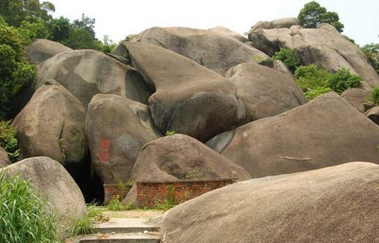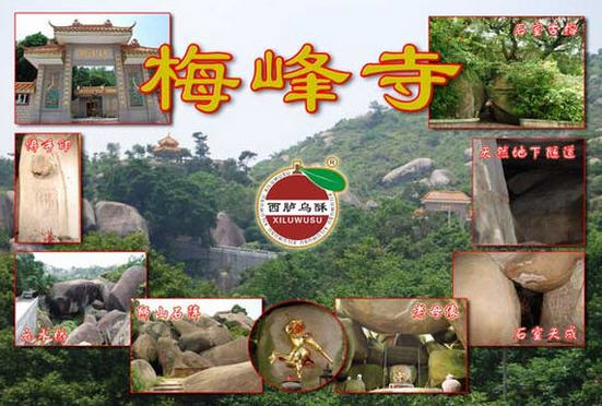 梅峰寺位于汕头市潮阳区西胪镇乌岩村后,故又称乌岩寺。据《潮阳县志》记载:“唐大历初年,福建人陈宝通在西岩寺削发为僧,拜惠照和尚为师,自号大颠和尚,后在乌岩村创建梅峰寺。”又据《潮州先贤录传》一书记载:“梅峰寺建于唐代中后期(公元789~824年),因满山梅林而得名。”可见,梅峰寺已有1000多年的历史。寺院四周,群峰如黛,怪石嶙峋,清风阵阵,果香扑鼻,景色清幽秀丽。寺院由天然石洞配置人工建筑巧妙构成。前面的大雄宝殿为人工建筑,面积约200平方米,分前后两厅,两边有厢房,建筑古朴大方,大雄宝殿历经1000多年的烽烟战火,几经摧残,历代都曾维修,至目前仍保留唐代的建筑风格。大雄宝殿后面,有“开天佛祖堂”,这里是一天然石洞,奇趣的是,进洞的门由二支直立石柱、上面一片大石构成,酷似人工构建,但仔细一看,石柱与山石相连,上面的大石也系天然形成,由大门进佛堂,两块岩石交*盖顶,岩石交接处有一大孔,透过阳光,似一天然露天小院,小院后面的石洞为“开天佛祖堂”,供奉“开天佛祖”塑像,佛祖塑像慈祥逼真,栩栩如生。佛祖堂“墙壁”和“屋顶”皆为天然岩石,石壁上有唐代碑记石刻,可惜因年代久远,好多石刻文字模糊不清。