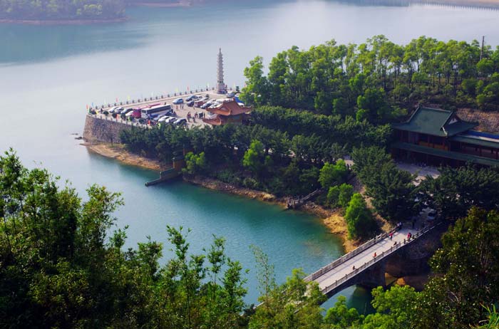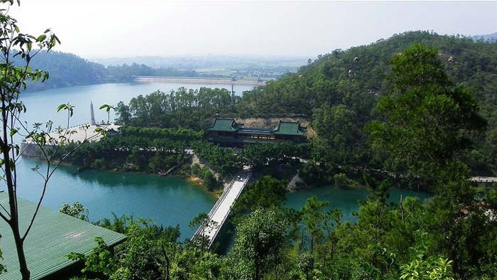 广东至少有数百家开放寺庙,古老而新生的金台寺一举被评为20家佛教文明寺院之一。这并非虚有其名。想当年开山建设新金台寺时“将军卸甲”成了光秃秃的“黄土高坡”。如今这里绿树成荫。满眼苍翠。这是金台寺僧侣与众信徒几年来绿化造林勤种善管的成果。那一弘碧水的五保水库一直供给山下几万人饮用而未受污染超标,这有赖于法师们注重环境保护。他们放生了大量鱼、鳖和飞鸟,任其繁衍生息,造就了鸢飞鱼跃、鸟语花香的生态环境,因而登临新金台寺,令人心旷神怡。随着香客游人日多,而且成了一处旅游观光新景点,还吸引了内地和香港的影视剧组来此拍摄外景。
