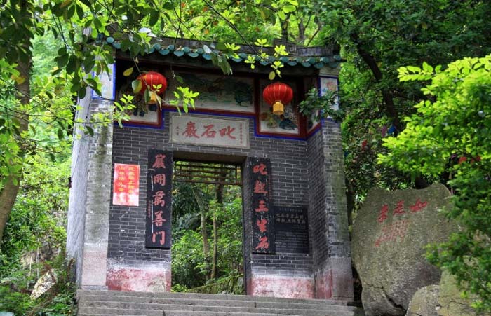 叱石公园,位于杜阮南部,新会圭峰山国家森林公园的北峰,近靠江门、新会两大城区,乃广东江门五邑著名风景区。叱石景区始建于明末,至今已近400年历史,为“岭南八景”之一。叱石景区山势雄伟,万松竞秀,奇石遍布,清流飞瀑,早已形成“叱石松涛”、“一洗红尘”、“一天秀色”、“天然石室”、“叱石成羊”等驰名胜景,还有“叱石成羊”、“北燕岩”、“太子亭”、“白仙祠”等历史人文史迹和历史传说故事。
