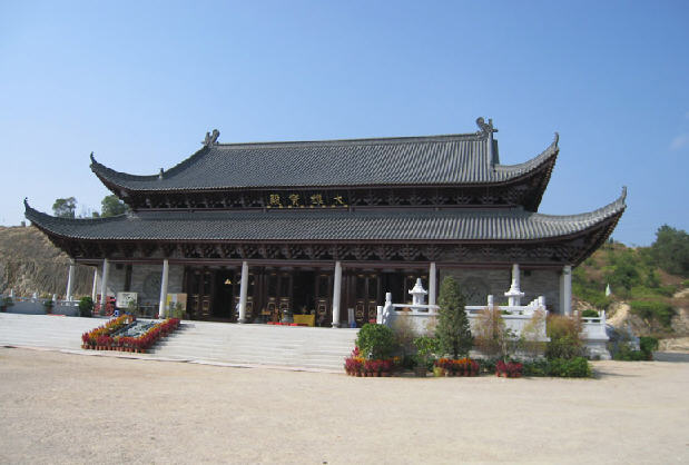 现已建成大雄宝殿和左侧一幢占地1000 平方米的三层附属楼,大雄宝殿面宽七间,宽39.50 米×进深27.50 米,通高15.52 米,建筑面积1086.25 平方米。
