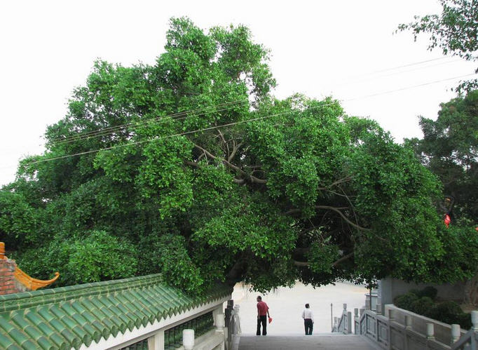 华山寺内树木茂盛,古榕树连