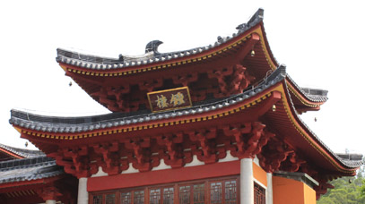 鼓楼,与钟楼相对建于寺院的左右,为悬鼓打时之处。也做举行法事时集众而用的法器,《释氏要览》载,比丘在布道时,众人不按时集会,佛说打犍椎或打鼓等而召集。因而晨昏撞钟击鼓已成为中国佛寺的一种传统。