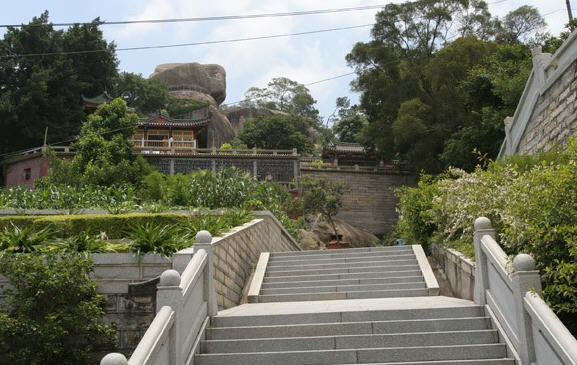 水质清甜甘冽,酿酒十分好喝,故称之为“醴泉”。沿寺后拾级而上,有“问仙路”、“仙迹石”、“石棋局”“灶浴盆”等景。顶峰巨石,刻“天界”二字。临近绝顶有个天然岩洞,站在洞中高声一呼,便觉得山鸣谷应,回声很响,故名“长啸洞”,洞壁有明万历年间平倭将领施德政等人的唱和诗。登上绝顶骆驼峰,放眼四望,厦鼓岛风光尽收眼底,令人心旷神怡。