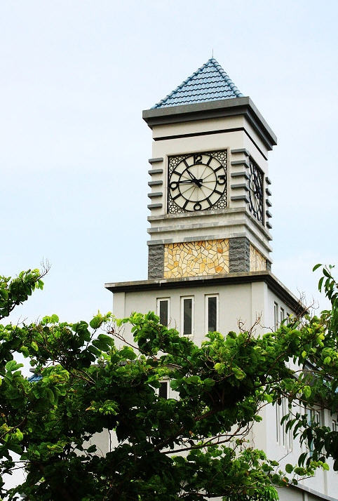 广场两旁,各建成长廊,以供游人香客休憩。广场后正中石阶两旁各立一只大石象,形象古拙朴实。沿石阶而上,则来到第一平台。平台两旁各有一间平房,左边题“入三摩地”,是龙海市佛教协会慈善功德会办事处;右边题“出菩提道”,是普照寺办事处。平台后石阶左右各有一座四层方形塔式楼,作为钟鼓楼。