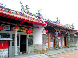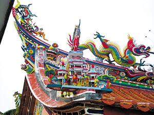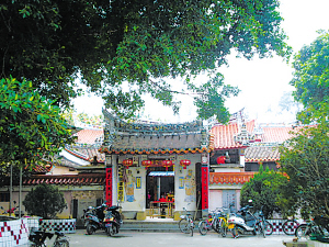 古刹登云寺的前殿为观音殿,供奉观音佛祖、十八罗汉等;中殿供奉注生娘娘、紫云法师等神明;后殿为阎罗天子殿,供奉阎罗王、地藏王、大众爷公等神像,阎罗天子殿内有两支石柱,浮雕蟠龙,栩栩如生;屋脊有双麒麟弄球和双龙戏珠雕塑,还有诸多部位布有人物、戏剧、花卉、禽兽等剪瓷彩雕,精美华丽,效果别具。寺里装饰考究,窗花木雕内容丰富,梁架木雕精细生动,整座寺庙红墙绿瓦,金碧辉煌。寺前镶嵌一八卦图案,右边还有一棵百年老榕树,树旁是一凉亭“福绥亭”。寺周林木葱郁,浓荫蔽天,以幽静称绝。