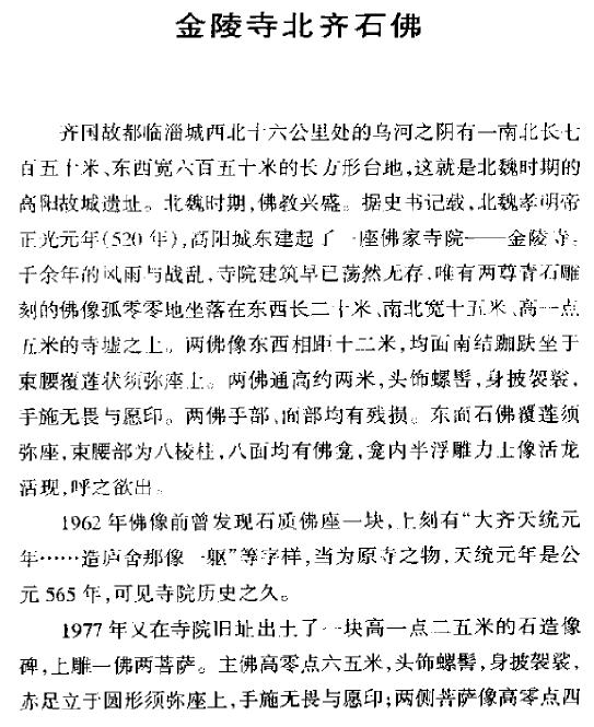 齐国故地,自古思想开放,经济繁荣,佛寺星罗棋布,附近一带,能举出其名者,金陵寺之外,还有普照寺、弥陀寺、清风寺、报恩寺、正觉寺、华严寺、石佛堂、丈八佛、铁佛庄、木佛庄……惭愧得很,我们甚至没有能力,将此地历代高僧、古刹名寺,一一介绍给您。