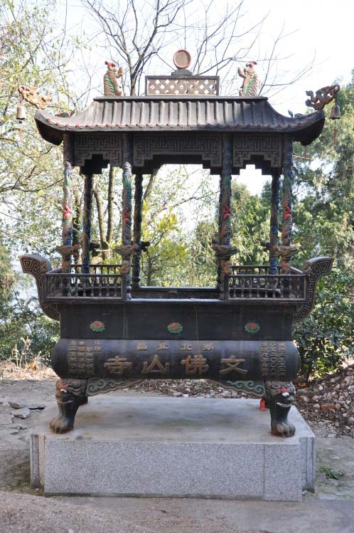 古寺毁于解放初期,九十年代初开始复建,先后建有文佛山庄(海拔588米处),文佛山灵官殿,三圣殿、三官殿等。正东方1800级凿石台阶如一条再玉带折攀沿至山顶,同时另有山后从茶场和枇杷坳两条路通往山顶。文佛山形似一箩筐翻扣在此,故名筐覆山,亦名鸡笼山、鸡罩山。文佛山北面8公里有一座水库叫楠木溪,库水蓝蓝,波光粼粼,水库东面青狮、白象、斑虎三雄扼守,大自然鬼斧神工,给文佛山造就出旖旎风光,让人心旷神怡。