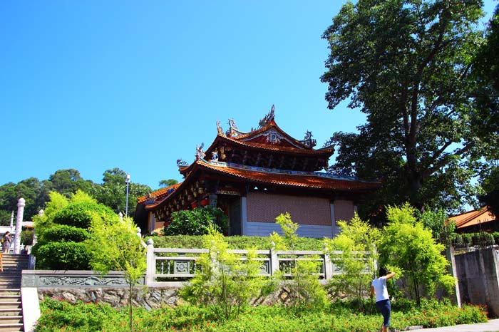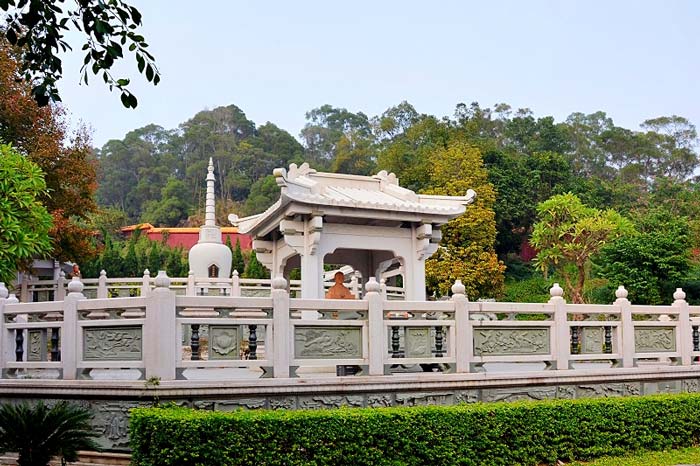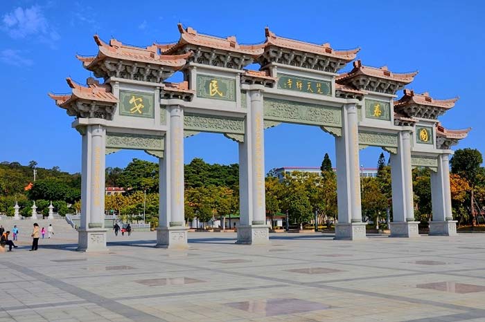 建后的梵天寺,依旧座落于大轮山南麓,寺前新辟梵天广场。广场随地势分成5级大石埕,整洁素雅。广场尽北,新凿喷水池一方。