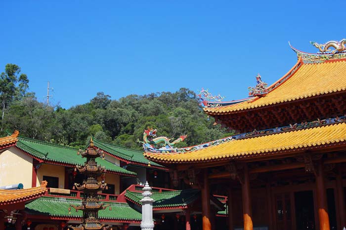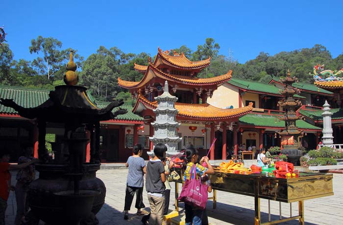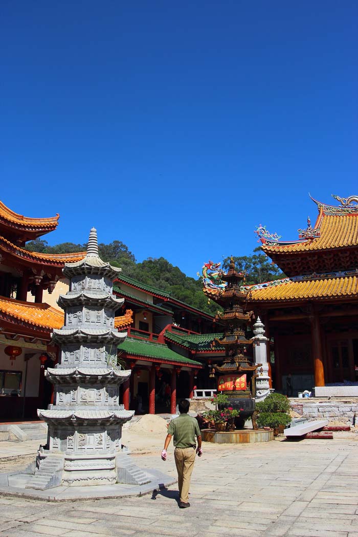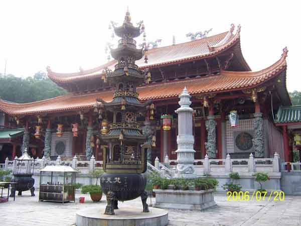 中轴线诸殿两旁依地势新建两列爬山式骑楼长廊,楼下前为廊道,后为殿堂。一层两序布列着五百罗汉堂、钟楼、鼓楼、伽蓝殿、弥陀殿等堂殿。二层寮房僧舍。东序北隅突出一院为斋堂。
