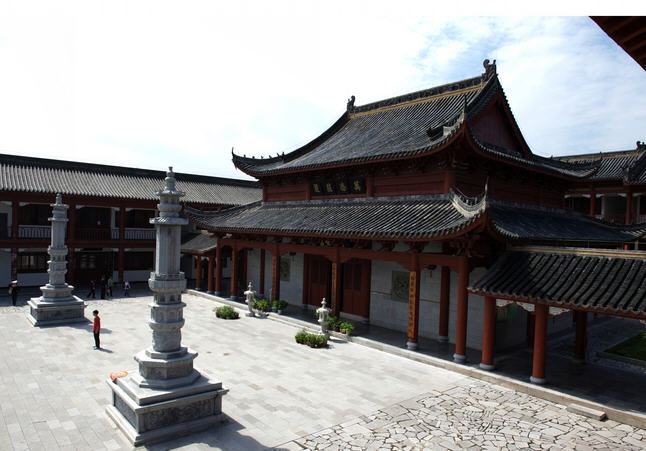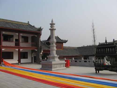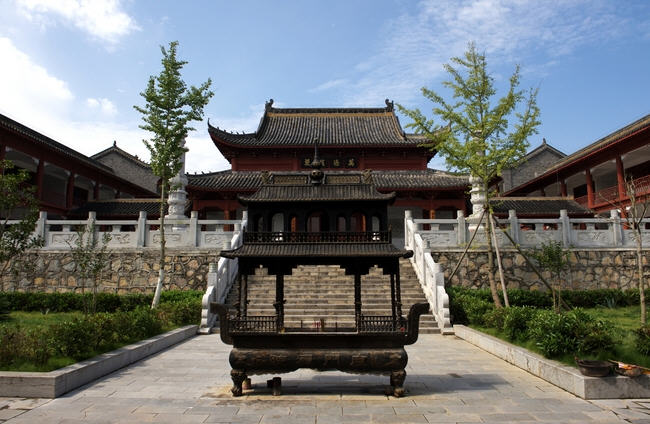一日,慧公访度门,寻礼国师塔,但见荒寞空山,残垣瓦砾。昔日选佛场,尽数化村舍。好不凄凉!上人叹曰:一年一度到度门,依旧残垣绕废基;遥想帝师当日事,不应身后绝香祠!志存兴复度门,有诗铭愿曰:度门不见大通碑,寂寞空山草木悲;我欲拂尘磨古镜,还期众力共扶持。圣德无虚愿,亦因缘所至。杨勋先生感闻其事,亦发心护持,乐成此善举。众缘成熟,进展神速。乙酉年冬,征地搬迁,总占地二十九亩,八户村舍仅一月尽数迁移,重建工程顺利破土动工。山门、天王殿、大雄殿、国师阁、传灯楼、聚贤堂、学戒堂、禅堂、客堂、斋堂等,如法次第,设计精心,施工神速。总工期不足两年,建筑总面积万余平方米。一座规模宏大,布局合理,功能齐备,风格古雅,结构坚实。典范禅刹一气呵成。