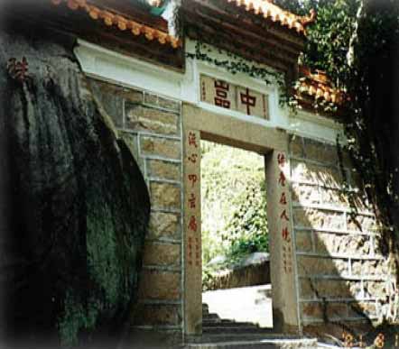 中岩在万石岩与太平岩之间,因岩上多鹧鸪,故又名鹧鸪岩。前人诗云:“中岩地介两岩中,山径萦行一线通,行到寺前欢喜地,当前玉笏又凌空。”