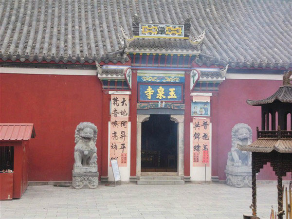 玉泉寺位于湖北省当阳市城西南12公里的玉泉山东麓。相传东汉建安年间,僧人普净结庐于此。南朝后梁大定五的(559年),梁宣帝萧察敕玉泉为“覆船山寺”。隋开皇十二年(592年),晋王杨广应智头奏请在此起寺,敕名“一音”,后改为“玉泉寺”;隋开皇十四年(594年),杨广敕封智头为“智者禅师”,并亲书“智者道场”匾额。唐贞年间(672——649年)僧法瑱增建;仪凤二年(677年)唐高宗诏请寺僧弘景为师;后周长寿三年(694年)金轮圣皇帝亲授舍利并敕建七层砖塔瘗之;三朝国师神秀在寺创禅宗北宗。宋天禧末年(1021年)明肃皇后感慕容邂逅之恩,捐银扩建,改额为“景德禅寺”;崇宁时又敕为“护国寺”。元世祖、武宗、仁宗皇帝敕修。明、清屡毁屡修。1949年后又进行了多次修葺。现存殿堂楼阁多具明清营造风貌,其间也部份保留宋、元规制遗风。玉泉寺曾与浙江天台国清寺、山东长清灵严寺、江苏南京栖霞寺并称为“天下四绝”,鼎盛时期其规模“为楼者九,为殿者十八。三千七百僧舍”,“占地左五里、右五里、前后十里”,被誉为“三楚名山”、“荆楚丛林之冠”。玉泉寺现存主要殿堂有:弥勒殿、大雄宝殿、毗庐殿、韦驮殿、伽蓝殿、千光堂、大悲阁、十方堂、藏经阁、文殊楼、传灯楼、讲经台、般舟堂和圆通阁等。其中大雄宝殿最为雄伟瑰丽,系我国南方最大的一座古建筑。大殿重檐歇山式,建筑面积1253平方米,通高21米,面阔九部,进深七间,梁架为抬梁穿斗式,立柱72根,斗拱154组,开花藻井,彩绘斑斓。殿前置隋大业十一年(615年)铁镬、元代铁釜、铁钟等珍贵的大型铁质文物十馀件;殿侧有石刻观音画像一通,传为唐代画圣吴道子手迹。寺内古柏苍劲,银杏叶茂,并蒂莲艳,桂花溢香,修竹翠丛,庄严谧静。