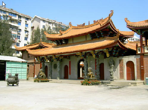 普光寺位于福建省厦门市思明区莲前大道西林洪山柄山坡上,古称金鸡亭。现山坡缝中开一大道,通往机场和国际会展中心。寺靠卧龙山旁,明初为郊野古道旁一辟雨亭,是通往同安内陆的五通路口的驿铺。道侧有一块天然怪石,状如金鸡独立,当行人在此驻足,拂晓时闻四郊村居鸡鸣之声,此起彼落,引人深思,情感此景,故有“金鸡晓唱”之美称,列为“厦门八景”之一。后有僧人在亭中供奉观音大士,故又称“观音亭”。明万历年间(公元1573---1620年),莲溪蔡锦文捐资修葺。清乾隆二十一年(1756年),河北人刘国柱因海难死里逃生,留宿于寺,见佛灯晃耀,认定佛力加持,感恩戴德,即日便聚金修葺。嘉庆末道光初(1817---1824年),亭复倾颓,里人捐资兴修。同治年间(1862---1874年)天界寺僧心奉就亭扩建殿堂。光绪二十九年(1903年),董事会邀请高僧转道和尚住持普光寺,并在道公及董事会叶大年等大力支持下重建本寺,僧团增至数十人,道风学习为厦门诸寺之冠。其后道公应新加坡居士邀请南渡创建普陀寺,致使寺渐寥落。直至一九一四年瑞枝和尚住持,厦港大善士蒋以德等募施巨资翻新殿宇,增建两厢僧舍寮房,并改称普光寺,本寺重现兴旺之象。