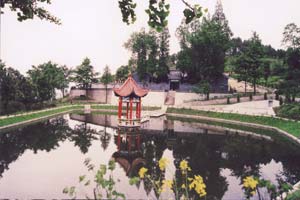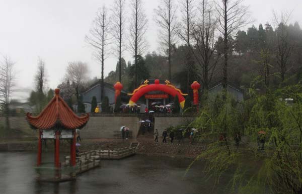 玉佛寺位于江淮岭,位于新县城南8公里处的江淮分水岭,气候温和,雨量充沛,植被丰富,怪石林立。园区座落于风景秀丽江淮岭上,如今,这里已成为人们观光旅游、休闲度假、揽胜猎奇、陶冶心境的好去处。1999年4月,新县县委、县政府把江淮岭生态园定为新县八大旅游景点之一。 进入园区,沿盘山公路缓缓而行,扑入视野的是成片的梯形的板栗林、银杏林、茶叶林,在清风的吹拂下,泛起一轮一轮的绿浪,煞是可爱。 这里,四季花艳,三季果香。春季,茶园飘香;夏季,花木葱茏;秋季,硕果累累;冬季,雪白松青。 这里,植物品种众多,布局有序,整齐划一,宛然如画,令人满目生辉。 如果说园区下面的生态还带有人工刻意培养的成分,那么园区的上面却属于大自然的原生带,更加风采迷人。游园者若只在下面望山仰叹,裹足不前,那将是平生最大的缺憾。 要游园林的上部,有三条路线供你选择: 或由标志碑(“江淮分水标志碑”的简称)起步,沿长江流域向上绕至揽月亭、玉佛寺; 或由标志碑起步,沿淮河流域向上绕至玉佛寺、揽月亭; 或由标志碑起步,沿江淮亭、六一九栈道直上山梁。这条南北走向的山梁,南端是揽月亭,北端是玉佛寺。 现在让我们选取第三条路线来一览险峰上的风光吧!