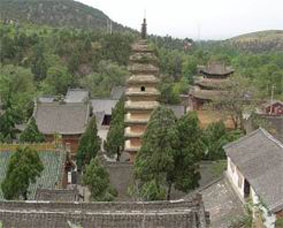 风穴寺位于河南省汝州城东北9公里的风穴山中,周围群山环抱,松柏苍郁,风景秀丽。该寺原名“香积寺”,创建于后魏,隋朝改名“千峰寺”,唐朝扩建为“白云寺”,俗称“风穴寺院”。明嘉靖、万历,清乾隆、道光年间,风穴寺均有大规模的修补和增建。该寺现有唐、宋、金、元、明清等历代建筑百余间,七十余座塔。主体建筑依山按中轴线而建,由山门经天王殿达中佛教、毗庐殿。毗庐殿后为一高台,台上建方丈院。最后为望州亭。中轴线东侧有地藏殿和观音阁;西侧有钟楼、藏经阁和唐塔;寺外有塔林两外,原有塔115座,现存73座,是河南省第二处较大的塔林。寺内现有碑碣八十余块。中佛殿建于金朝,面阔、进深三间,单檐歇山顶。明嘉年间重修该殿时,梁枋被抽换,只有斗拱和梁额仍为原形。殿内塑有一佛二弟子二菩萨。钟楼是宋、金时期建筑,为三滴水歇册式楼阁,面阔、进深各三间,建于石砌高台之一。上檐施补间铺作三朵,中下檐明次间各施铺作二朵,柱头用四铺作单昂,外跳令拱与要头相交,内部梁架简洁,中用横梁上悬挂宋宣七年铸造的大铁钟一口,高8米多,传说重9999斤。毗庐殿位于中佛殿后,阔五间,深三间,悬山顶,上覆琉璃瓦。殿内有明永七年周番王所赠汉白玉石佛一尊,雕工精湛。另外,涟漪亭、望州亭等也都是挑角飞檐,小巧玲珑,为著名古建筑群和游览胜地。