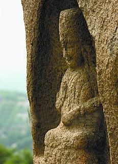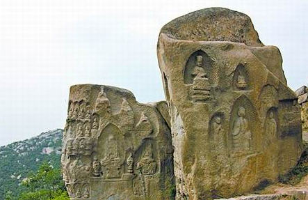 北石造像:山石北、西、南三面露明,崖面布满龛像。