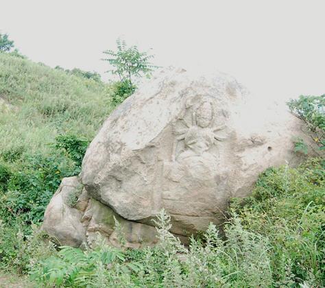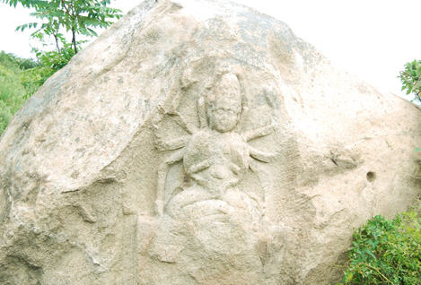 南石造像:南石东壁,因常年风雨剥蚀,多漫漶不清。南石南壁,由三个龛组成,内雕一坐佛,二立侍。南石西壁,上部品字形龛内雕有一佛二弟子二菩萨。西壁下部有一长方形大龛,内雕有化佛16尊。南石北壁,是此石最精辟之处。上面刻有一尊12臂观音即千手千眼观音又叫大悲观音,头束高髻,面部颐丰颊满,双目微眯,慈祥温雅,普度众生。