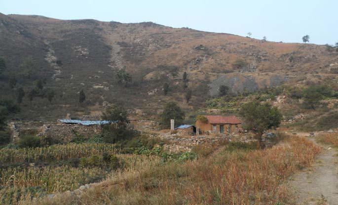 曹峪山色嘉秀,佛寺播誉四方,神往已久,且失之交臂者屡矣。时值暮秋,蓝穹高邃,远山青黛,百草丰实,万木摇落,白云致柬,醉心催征,乃偕柔克王君,驱“红驴”赴程,自明水北行,奔曹庄而去。以章邹大路车流如织,扬尘暴土,聒耳眩目,遂径韦陀、逾漯桥、掠茄庄、趋炭张、抵曹庄,沿土人所指示,直指曹峪。