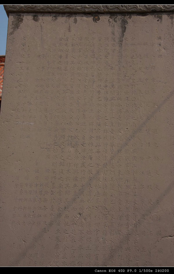 历史就是这样,不能永远停留在一页上。庙里今天没有老师讲课,只有虔诚的弟子们仍在温习他们的经卷。从庙里出来,在到庙前看古碑。