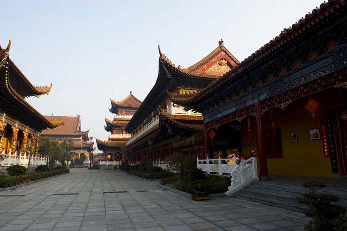 东西两侧的配殿呈东西对应,主要有:钟楼与鼓楼,伽蓝殿与卧佛殿,观音堂与地藏殿,斋堂与讲经堂,客堂与祖师殿。