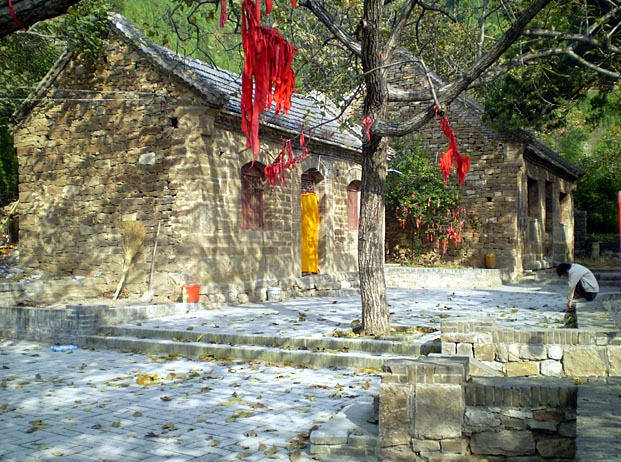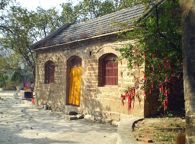 两座寺屋看上去已是面目全非,寺内空空,雕有壁画的墙壁已大部分塌落,岁月无情,世事沧桑,千百年来,九塔寺几经变故,历尽废兴,寺前左方碑上刻的《重修九塔寺记》中有这样的记载:“明宏治十三年重修九塔寺之碑,而寺名有定徵矣。”因多年风雨销铄“于是梓或就朽,甓或就蚀,饰之金碧,画之丹黝,类就凋落”,嘉靖年间整修后,“朽者挺如,饰者瑟如,凋落者焕如、灿如,于是视瞻俨俨,禅梵恬恬,钟磬訇訇,旃檀芬芬,祈谒而集,游者绳绳......”。可见九塔寺当年也曾风光一时。