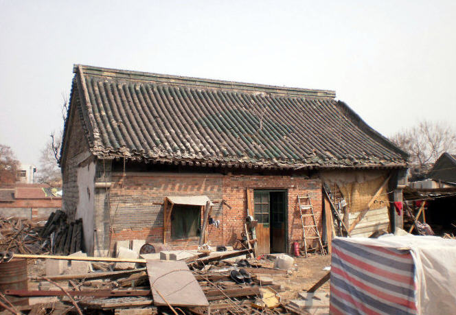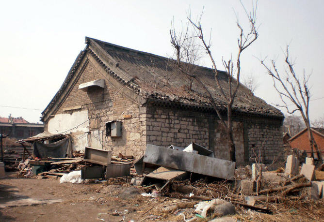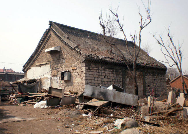 这座幸存的佛教建筑福慧禅林大殿,大殿屋檐已坍塌破落,门窗也都改成了新式门窗,正面的墙壁也用红砖重修过,顶部保存较好琉璃瓦,透露出其原始身份的不同寻常。