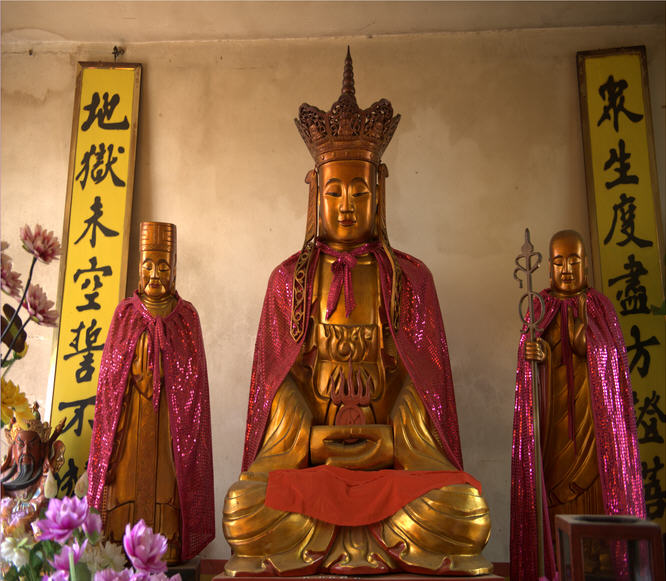 新建的大雄宝殿雄伟壮观,建筑面积达2300平方米,高24米,分上下两层。上层供奉佛像,供信教群众朝拜和从事佛事活动;下层为“福乐堂”用以安放永久性“往生灵位”和“消灾牌位”结合佛学、科学、突破传统格局,将佛法不离人间的理念融入其中。