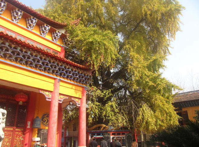 天王宝殿一侧就是被称“荆州树王”的银杏树(又称白果树),用围墙保护着,围墙上面树枝盘旋着一条栩栩如生的“龙”。