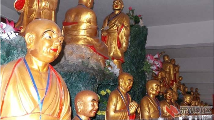 绕过银杏树,我们相继游览了大雄宝殿、观音殿、法身殿、圆觉宝殿、药师殿、大悲殿、全佛殿、百子殿、财部殿、地藏殿、念佛堂、罗汉堂等。