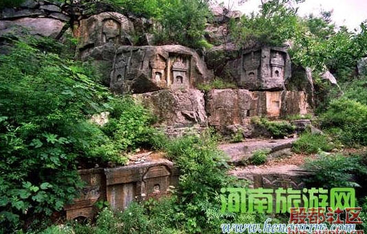 灵泉寺及石窟群,在安阳市区西南25公里的宝山之麓,位于安阳县善应镇南坪村南。这里山青泉碧,谷幽林深。