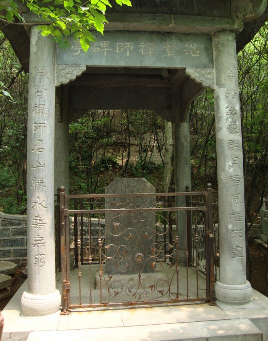 我想如果没有浩贤禅师,也就没了现在的胜水寺。根据碑文记载:浩贤禅师原名张浩贤,字聚堂,章丘人。生于元至顺二年(公元1331年)卒于明永乐元年(公元1403年)。浩贤自小出家,曾到长清灵岩寺学习佛法,后来往于灵岩寺、胜水庵和玉泉寺之间。他法学广大,从经论到庄学无所不通,曾收众多弟子和信徒。大明永乐元年十二月二十七日,浩贤召集众弟子说,明天饭后我就要圆寂了。果然,二十八日寿终。其徒惠增将其埋葬,并请了当时的大师程南云与黄养正为其书写、篆刻铭文。