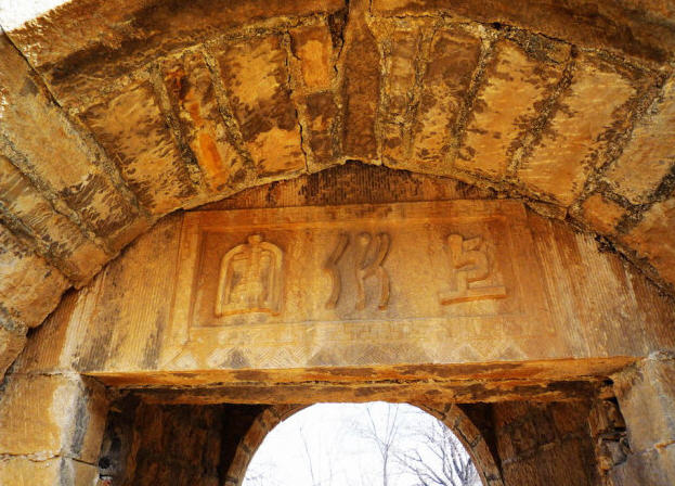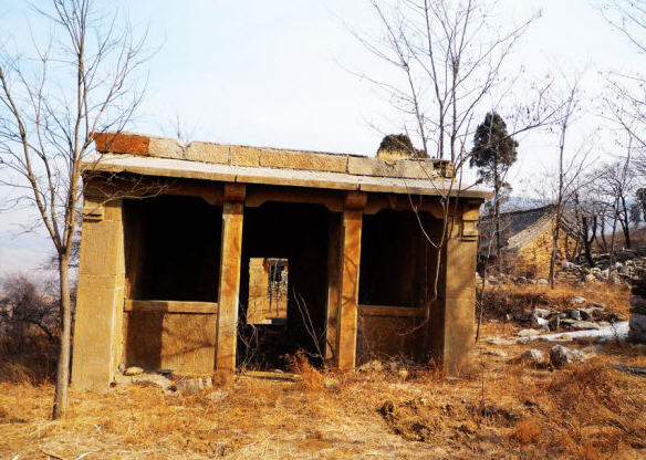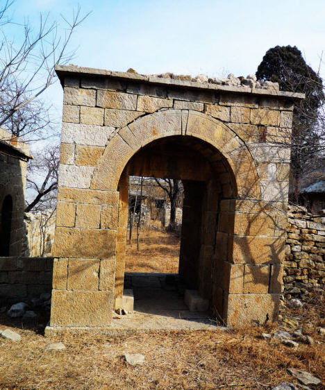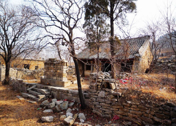 三教堂,踏上石阶进入院内,能清晰地看出庙宇的建筑规模及格局。这是一座佛、道、儒三教合一的道场,主殿原供奉的是“老子、圣人、佛”。“三教堂”的拱形门券上雕刻着卷草纹,柔顺流畅。西厢房砖结构硬山屋顶的下方刻有阴阳太极图,自然浑朴。