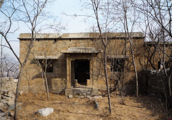上水庵最精制的建筑要数正殿了,正殿在院子的最北头,面阔三间,大殿通身采用精细石块垒砌而成。门前的两根石柱撑起整石雕成的厦顶,左右立柱上所刻对联字迹已分辨不全,横批“浩气凌云”依然荡溢着洒脱的大气。正殿的门、窗、厦檐及室内的佛龛均雕刻着精美的花纹,造型庄重严整,层次分明,简洁明快。
