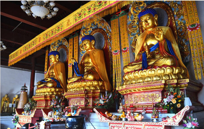 重建后的大殿取名为大雄宝殿,整个建筑气势恢宏,是济南市最大的大雄宝殿。