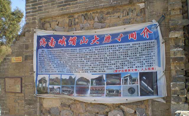 在文献查询中,记者发现,1994年出版的《槐荫区志》载有:大悲寺位于段店镇大金庄西峨嵋山。清初大金庄金某所建,因其人好佛,取名大悲寺(大慈大悲之意)。清同治年间,建二仙祠,清光绪年间建文昌阁。1997年出版的《济南市志》载有,(大悲寺)白衣阁在正殿后上方,悬山顶,现已坍塌,仅存西山墙。