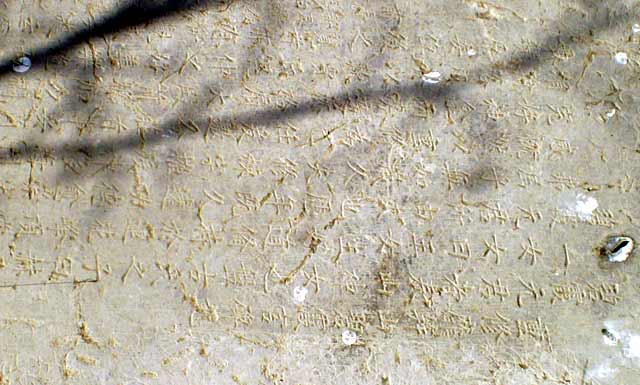 在实地寻访中,有两副对联引起记者的注意。一副刻于峨嵋山下院钟亭北侧立柱上,上联为“钟声传三千界内”,下联是“法雨扬万亿国中”;另一副则刻于上院东殿墙石中,上联为“面山枕水开仙境”,下联是“纬地经天发圣文”。仔细琢磨,这两副对联所宣扬的竟分别是佛家、道教两种不同的宗教意旨。