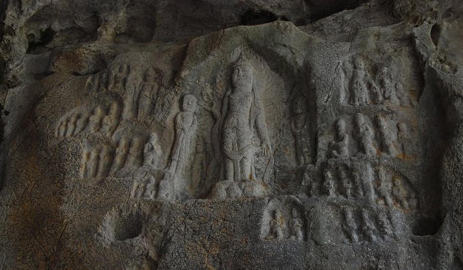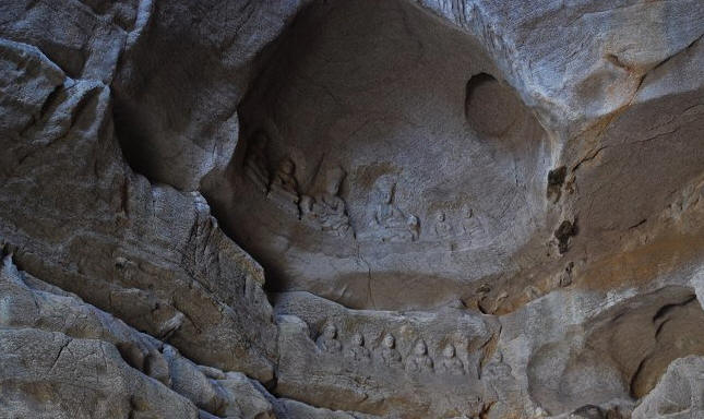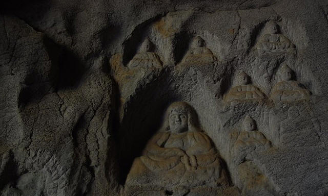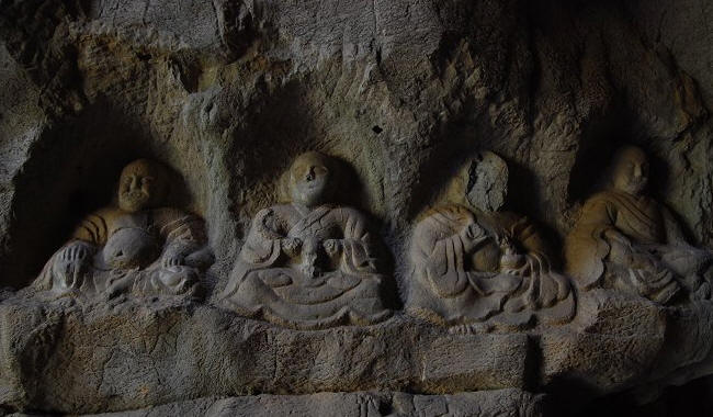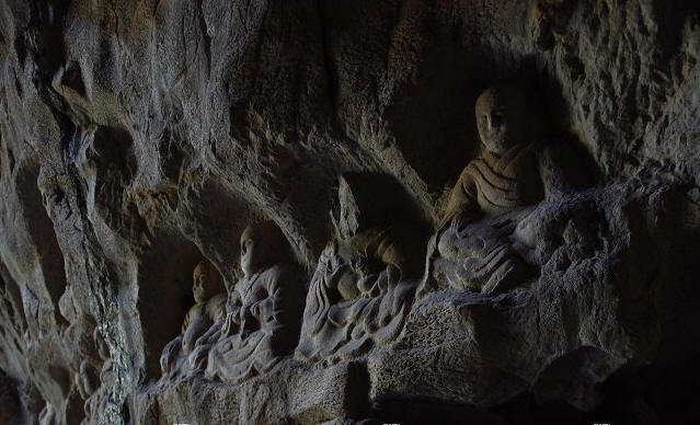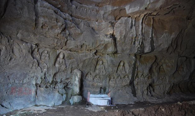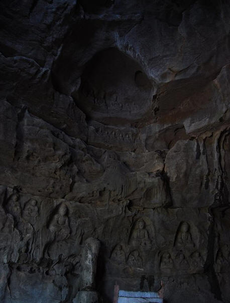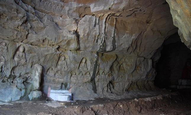 宋、元代凿刻。位于章丘县阎家峪乡赵八洞村南800米的山岭西北麓,1979年被公布为市级重点文物保护单位。洞坐西朝东,平面呈不规则形,口宽8米,深约50米,高5~20米,为自然石洞,进洞5米处南北两壁始有浮雕造像,有关公、关平,周仓、如来、观音、罗汉等像。北壁造像44处,南壁造像37处,保存基本完好。进洞口1.’5米处南壁有石匾一方,上书“通天透天”四个大字,落款为“明嘉靖巳酉岁四月雪蓑子苏洲为中麓山人龙洞题”。