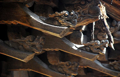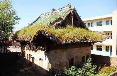 这座建于公元1509年 (明正德四年)的木结构大殿琉璃瓦上长满蓬蒿、瓦松,大殿前檐和后檐下的十余根木椽腐朽严重,房顶微陷,情形不容乐观。
