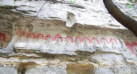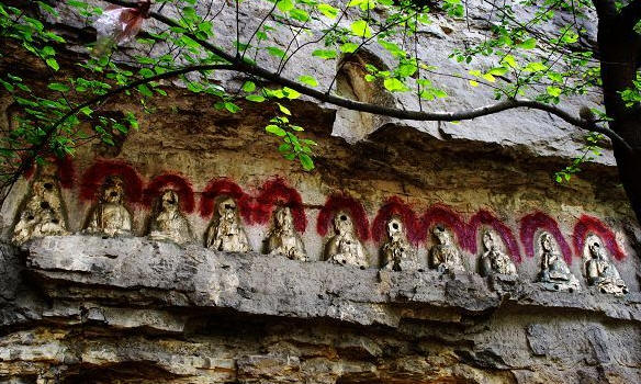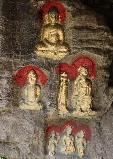 曾经香火鼎盛的开元寺,只剩下周边岩壁上的石雕佛像和石窟里的名人题记,在诉说着当年的“暮鼓晨钟,经声佛号”。开元寺东,尚有石洞供着唐贞观年间的佛像,洞下有泉,有元代察罕菩华所题的“长生泉”泉名;寺南的山崖下,有“滴露泉”,又名“甘露泉”,水自岩壁渗出,如同滴露,落入“秋棠池”;寺西密林深处石壁下,有“卧云洞”,深约30米,相传为开元寺卧云和尚修炼之处;寺北石壁上,有鬼蛇雕刻以及上下石室,里面还保留着隋唐宋元明清各代名人的题咏。