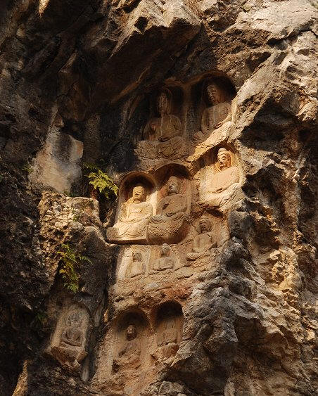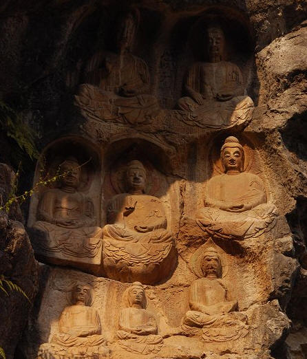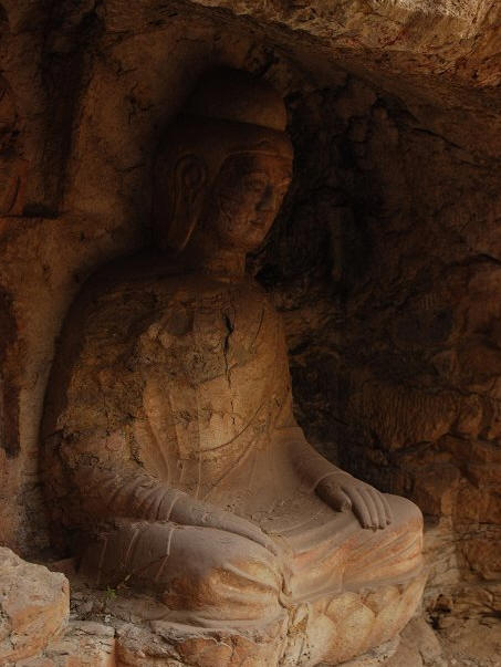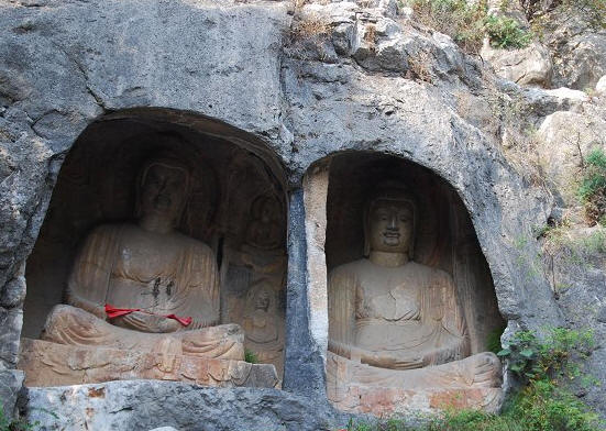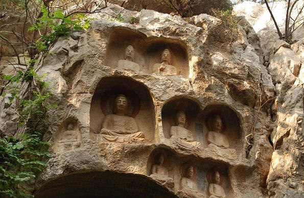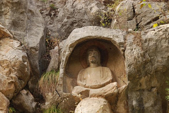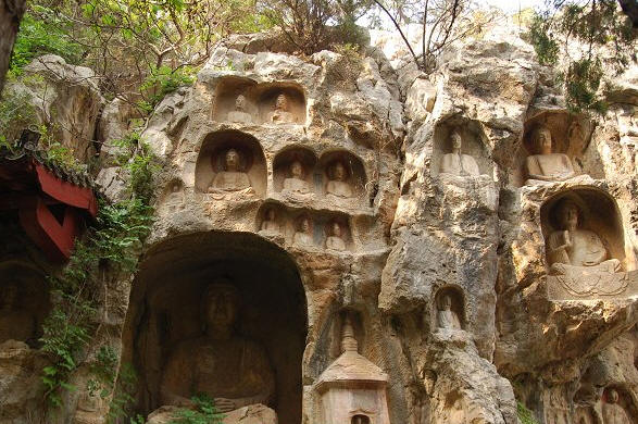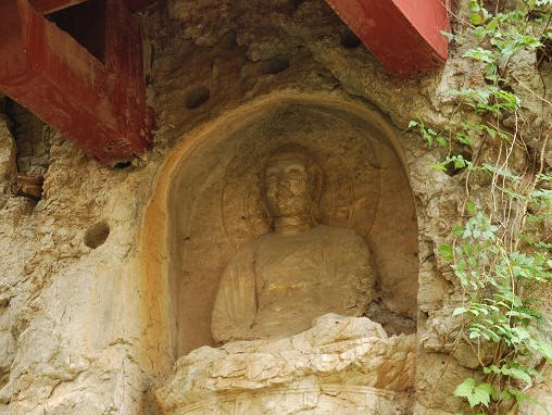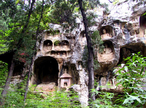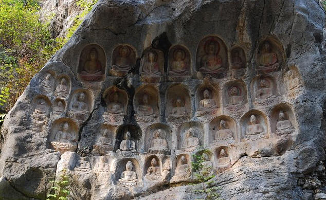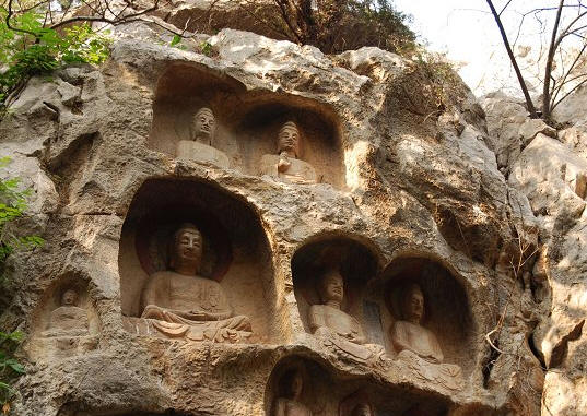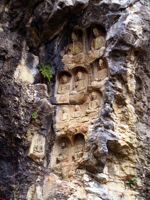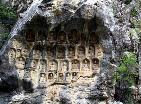 千佛崖造像 千佛崖造像位于神通寺遗址西山腰石崖处。1977年定为省级重点文物保护单位, 1988年定为全国重点文物保护单位。南北长65米,有大小造像221尊,造像题记43 则,从唐高祖武德时(618~626年)始凿,到高宗时最盛,至睿宗时止,前后历时70 余年。余为后人重修或游人题记。南端第一窟,是显庆三年(658年)南平长公主造 像窟,窟内刻坐佛1尊。由此往北,有两个大窟,即贞观十八年(644年)和显庆三年 (658年)僧人明德造像窟。千佛崖中部悬崖有一群体像,大小均匀,排列整齐,共 35尊。北部造像稀疏,最后为两个大窟,有大小造像27尊。