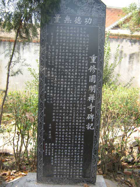 寺内现存明代重修园明寺碑载,其形势之胜,峰恋叠翠,美茂而肥也。
