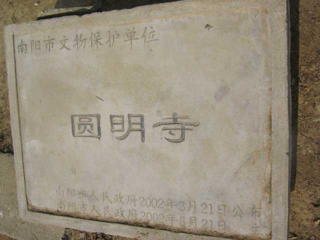 园明寺是南阳宛北一大名胜古迹,也是弘扬祖国佛教文化的场所,它鼎盛之时全寺有僧人二百八十多人,时常接济南下北上的僧客。该寺由于年代久远,历经沧桑,寺殿失修,至民国后期,佛事衰落,住持远道遁迹,殿舍大部倒塌,1982年时原宛县政府公布其为县级文物保护单位,但该寺被小学占用至今,现仅存中佛殿一座,寺内明、清碑数方,存有塔志铭一方。