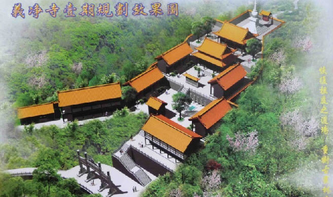 义净寺坐落于济南市长清区张夏镇东山之上,其山远看犹如两尊卧佛,仰卧于山顶,其寺正座落于佛腹之下,真乃是匠独天工,奇境巧合,佛腹(福)之地,山上郁郁葱葱,肩点多多黄花,构织成一幅美丽的图画。更有寺中两眼泉井,终年涌水不断,像两只龙眼一样清澈透明。并有千年古树,古碑多处,更稀有者为义净法师之真迹楹联一幅尚存:曰“花雨缤纷双树枝头联贝叶,香云缭绕昙花影里放金光”,真是佛祖之法眼灵明。本寺之开山祖师就是中国古代佛教四大译经家之一,——义净大师。