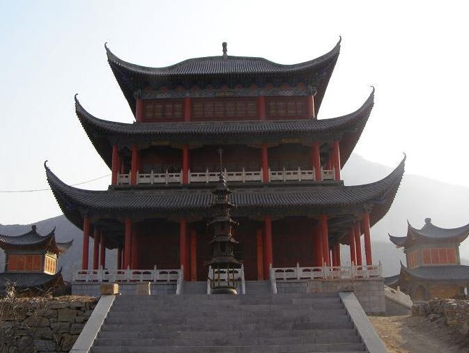 敬奉有佛祖释迦牟尼佛、药师佛、阿弥陀佛。位于古灵山外,灵湖北岸,三面环水,四面环山,高三十余米仿岳阳楼的建筑风格,飞檐凌空,雕梁画栋。