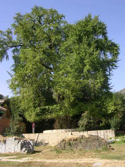 银杏树在清泉左侧,三山环保,翠竹掩映,古木参天,高耸入云,堪称稀世神木。此树高27.5米,树基围11.2米,腰围7.20米,冠幅近400平方米,有人在网上查询,此树为中国银杏树第一。相传此树植于汉代,距今已有2000余年。树左有清泉,常年不断得泉水从山中汩汩流出,至于银杏树下汇成一泓清塘,树根伸入塘中,得到山泉滋养,枝繁叶茂,年年果实累累。夏日,围聚树下凉风习习,幽思暗生。