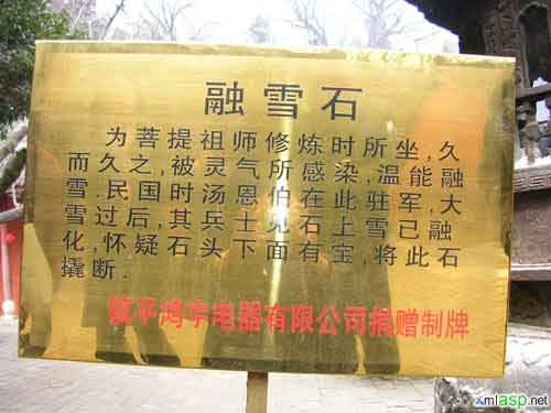 大雄宝殿前有“三奇”,即:钟石碑、十月兰、溶雪石。钟石碑,碑文不奇,奇在以石击碑便响如钟磬;白玉兰,明代所植,当年5月含苞,次年清明开花,羞羞答答,怀胎十月才吐蕊;溶雪石,一米见方,落雪即溶,每遇大雪之日,寺内皆白,惟它片雪不留,一丝不染。